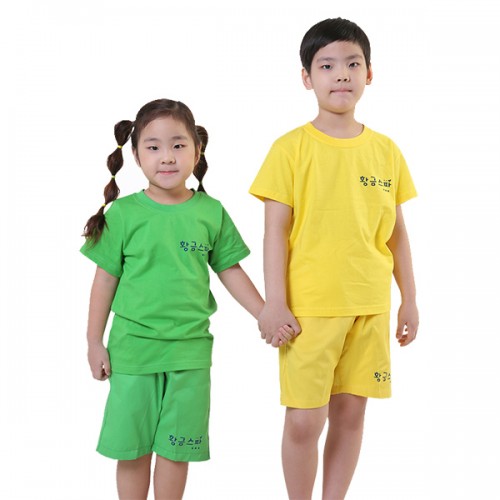 CF 세트 아동 찜질복 노랑 연두/사우나/찜질방/안마/마사지/목욕탕/